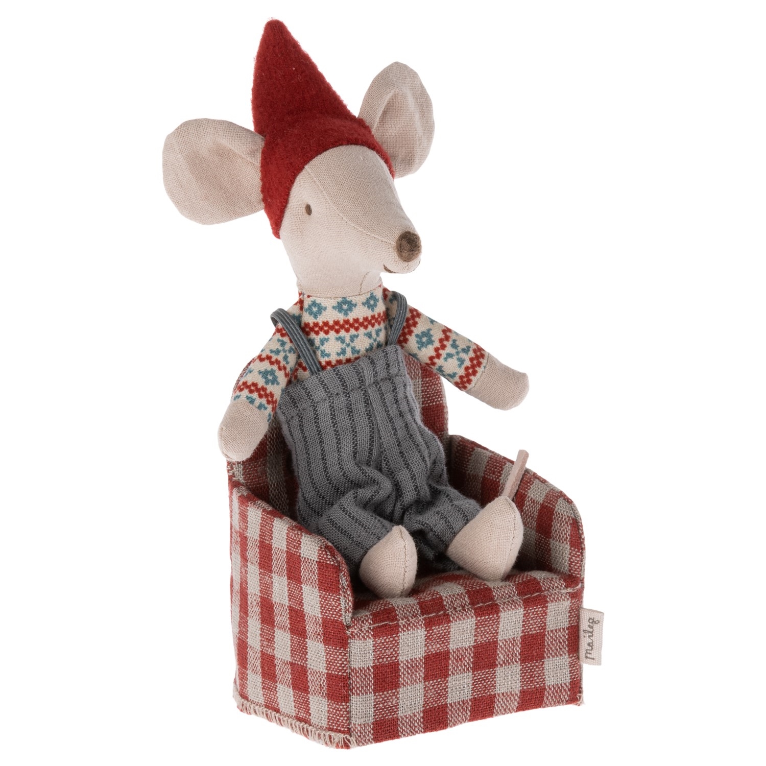 Hyggelig lænestol når de små Maileg venner skal slappe af. Den passer perfekt til Mailegs andre møbler og hele musefamilien vil elske denne fine stol. Stolen leveres usamlet, men er meget let at folde og samle.